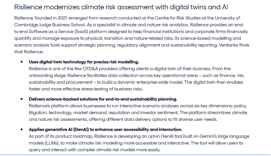 Risilience listed as ’modernising climate risk assessment’ by Verdantix