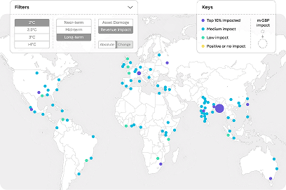 Riise quantifies the financial impact of both transition and physical climate and nature risks, supporting commercially relevant insights for use across the business from executive leadership to individual business units, product categories, facilities, EHS, risk, finance, sustainability and procurement.