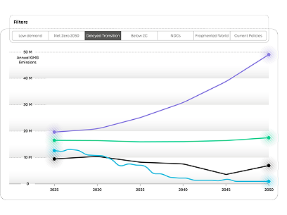 Riise enables businesses to stress test emission reduction forecasts considering different emission pathways and view the material impact of initiatives that drive net-zero goals.